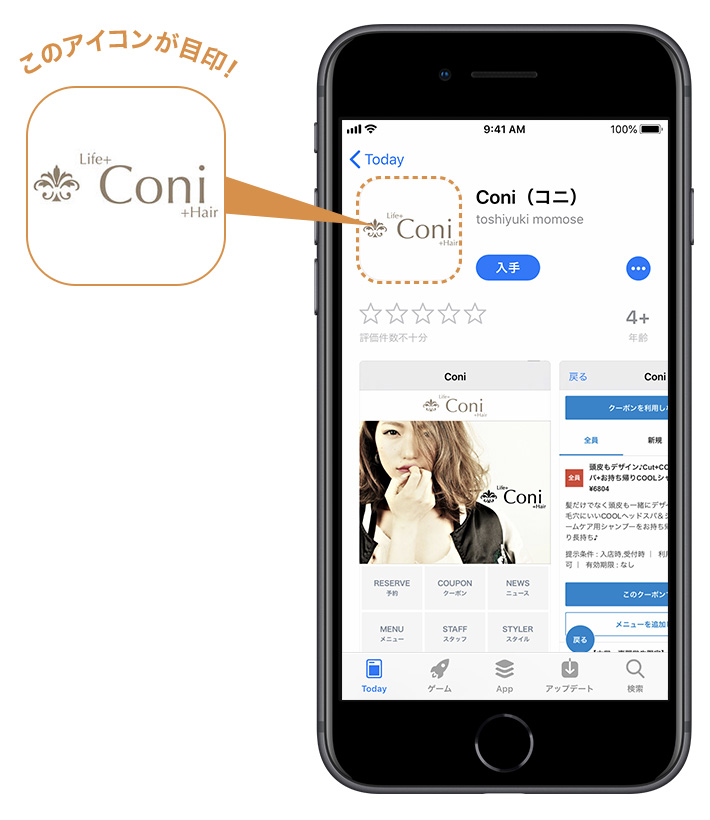 App Store・Google playから、coniの公式アプリ(無料)がダウンロードできます!